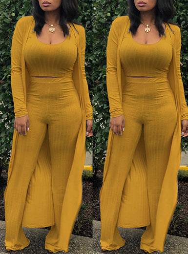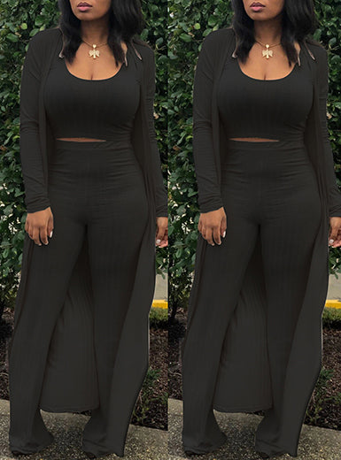 The Classy & Comfortable 2 Piece Casual Set is most unique in its styling, as the crop top has a built-in midi sweater that adds a layer behind the outfit that hangs to the backs of the ankles. The top has a close fit and a simple round neckline. The long sleeves end at the wrists. It is made from our best quality cotton blend fabric and has a small percentage of Spandex to give it a comfortable stretch. The pants are very comfortable, and have a softly elasticized waistband to secure them comfortably. Wear it with trainers. Wear it with heels. You’re going to love it!
